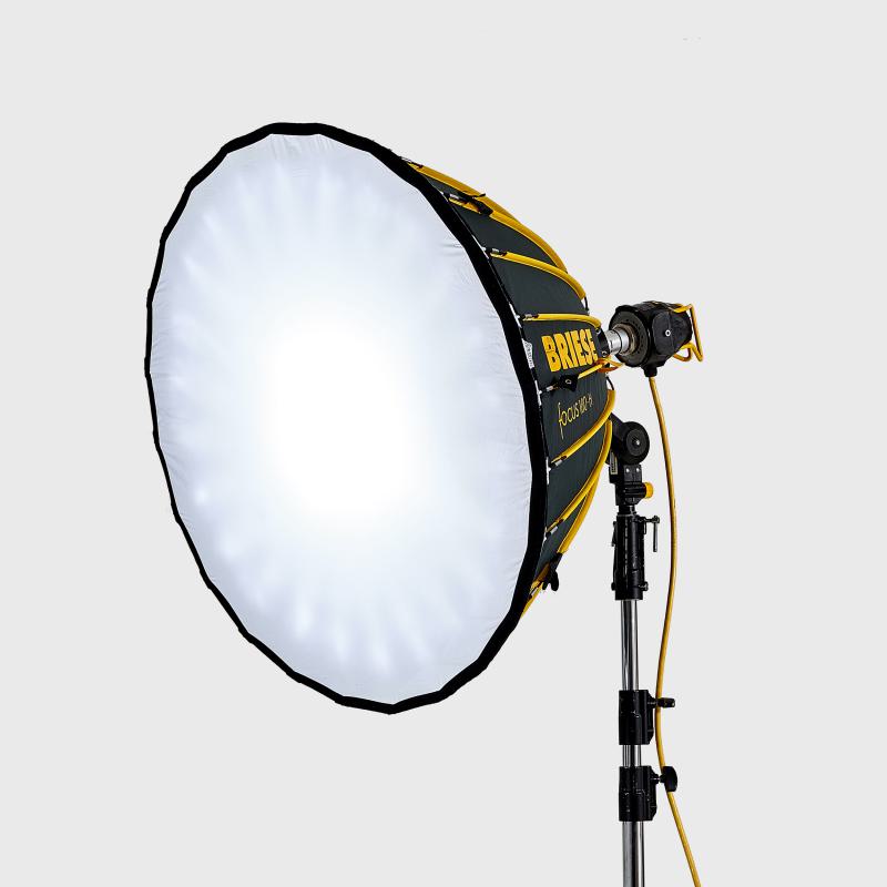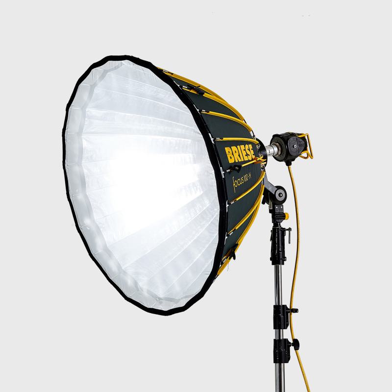 Verglichen mit dem 77er Briese ist das Licht des 100ers knackiger. Für Kontrastreiches Licht, was Einzelheiten hervorhebt. Für Portraits aber auch Stillife. Wie alle Briese-Schirme stufenlos fokussierbar.